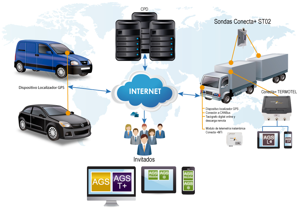 Con las aplicaciones AGSConecta y AGSConecta Mobile podrás mantener un control centralizado de la localización de tus vehículos y consultar los datos de temperatura a través del termógrafo digital telemático Conecta+ Termotel instalado en los vehículos.